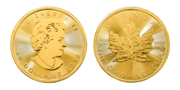The Gold Maple Leaf Coin is the official gold bullion coin issued annually by the government of Canada and minted at the Royal Canadian Mint (RCM) starting in 1979. The coin guarantees a purity of 99.99% gold which makes it one of the finest produced gold coins worldwide. Originally, the coin was released in .999 fine Gold, and starting 1983 the Gold coins minting changed to .9999 fineness. The reverse displays a Canadian maple leaf while the obverse bears a portrait of Elizabeth II. Her portrait has changed 3 times since the initial release with 2005 being the final update.